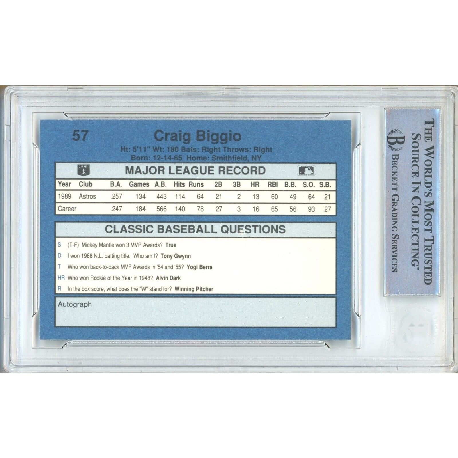 1990 Classic Blue #57 — Craig Biggio Houston Astros Autographed Trading Card — Beckett Authentication
