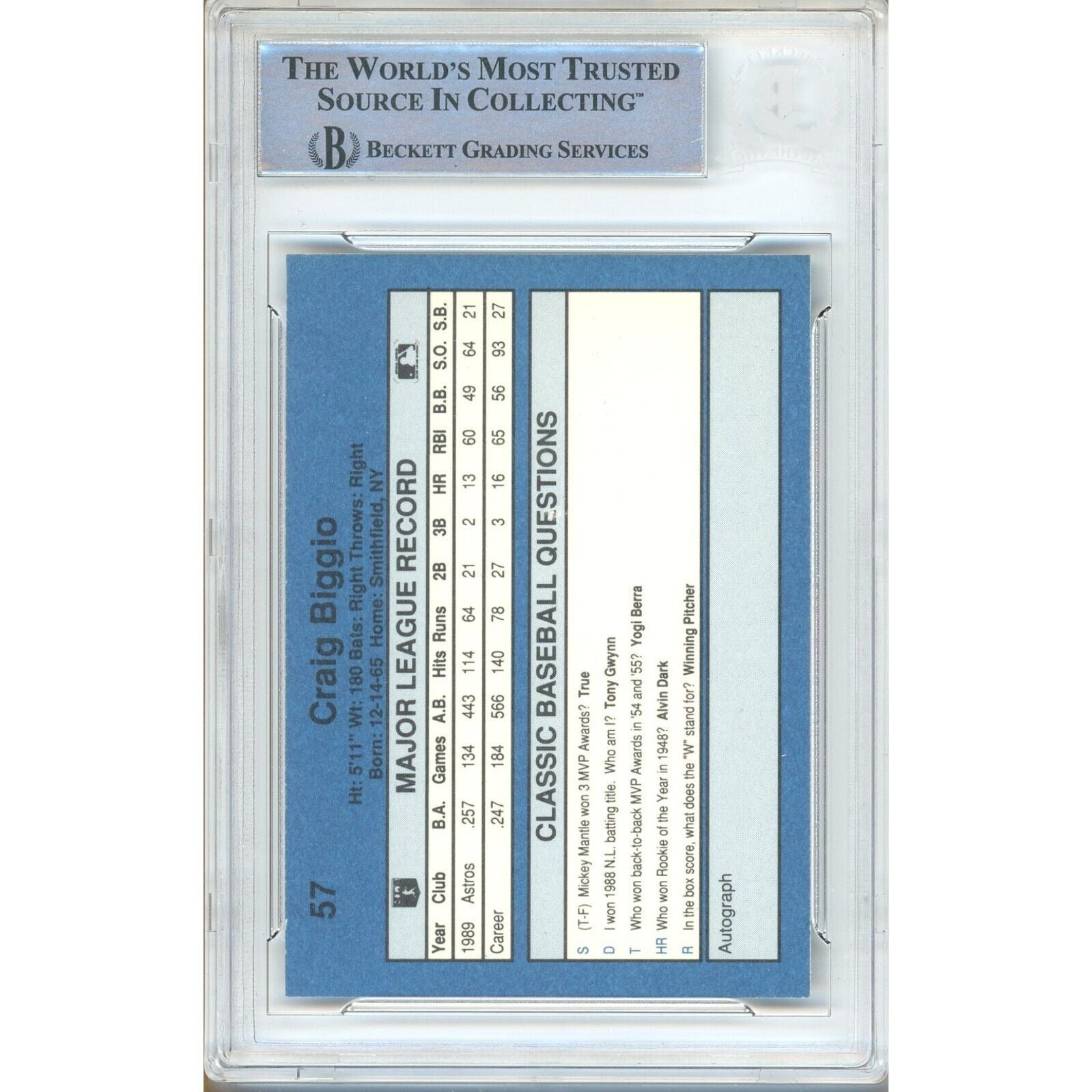1990 Classic Blue #57 — Craig Biggio Houston Astros Autographed Trading Card — Beckett Authentication — authenticated by Beckett Authentication Services (BAS).