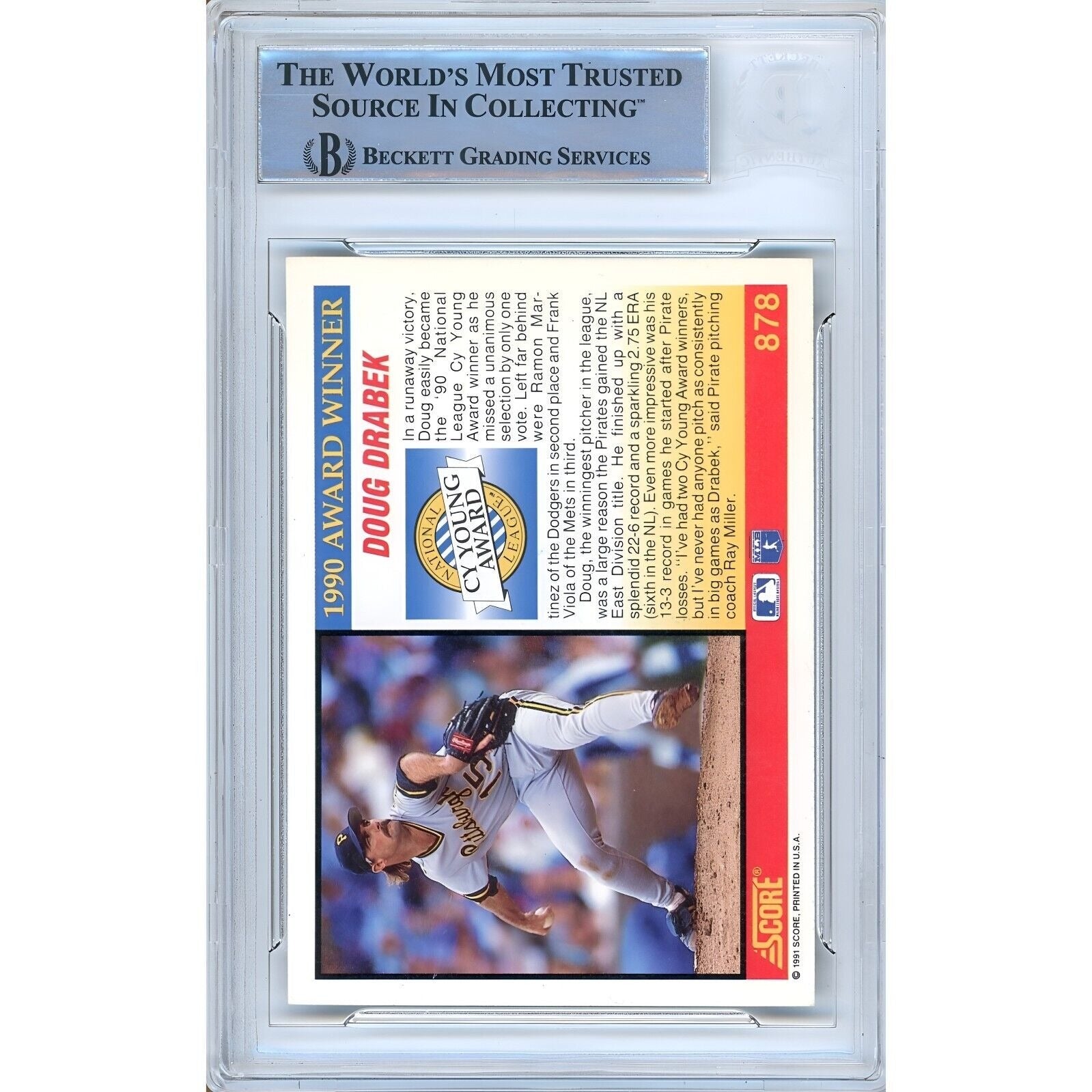 1991 Score #878— Doug Drabek Pittsburgh Pirates Autographed Trading Card — Beckett Authentication — authenticated by Beckett Authentication Services (BAS).