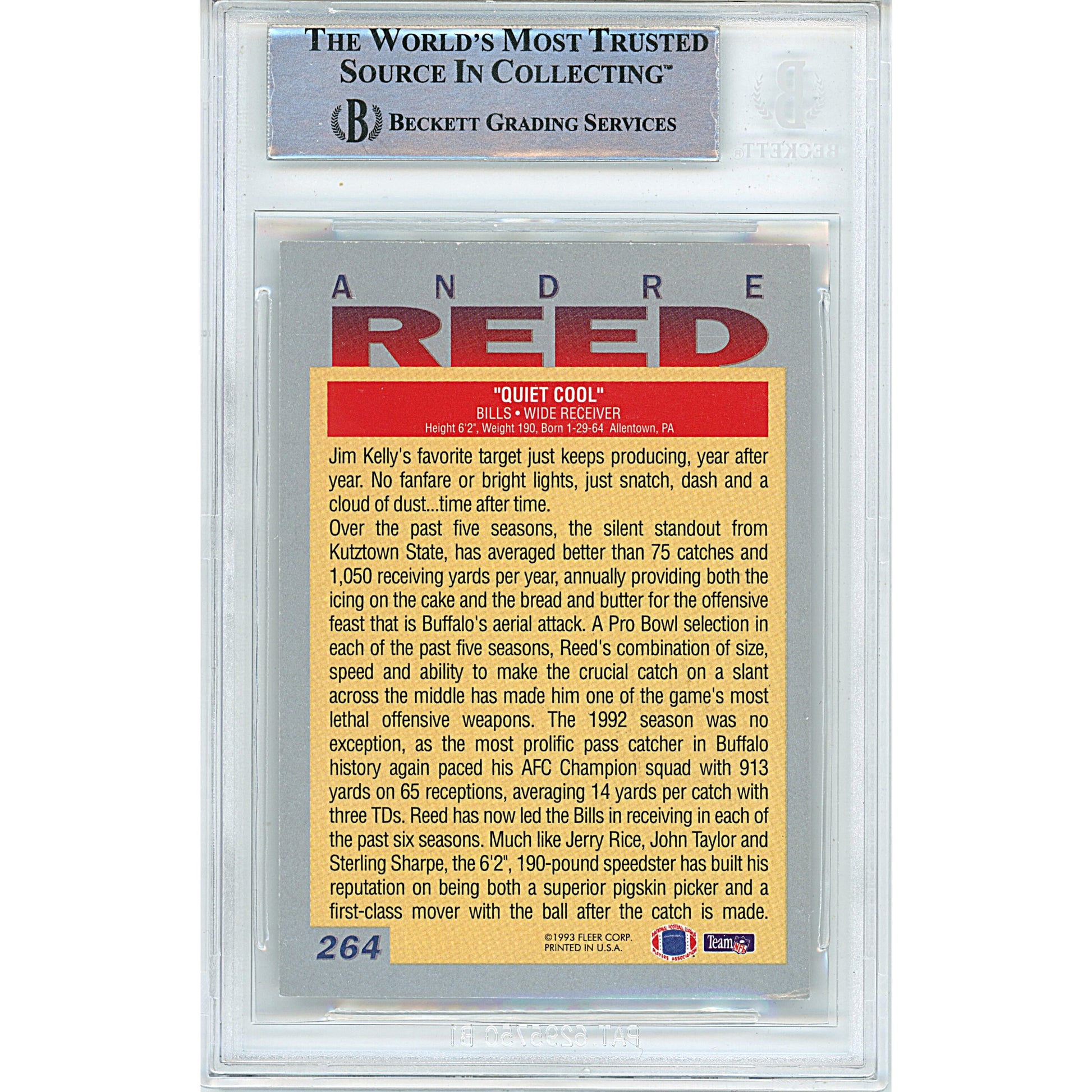 1993 Fleer #264 — Andre Reed Buffalo Bills Autographed Trading Card — Beckett Authentication — authenticated by Beckett Authentication Services (BAS).