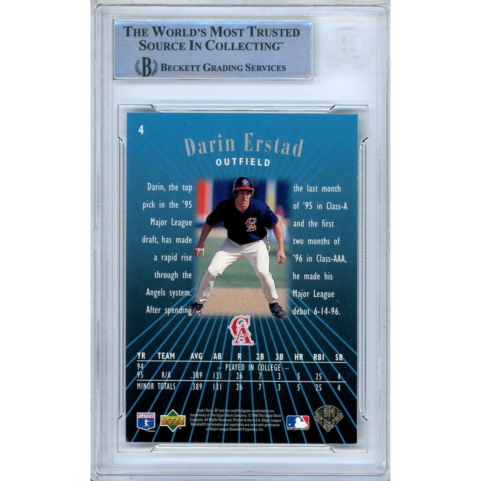 1996 Upper Deck SP Foil #4 — Darin Erstad LA Angels Autographed Trading Card — Beckett Authentication — authenticated by Beckett Authentication Services (BAS).