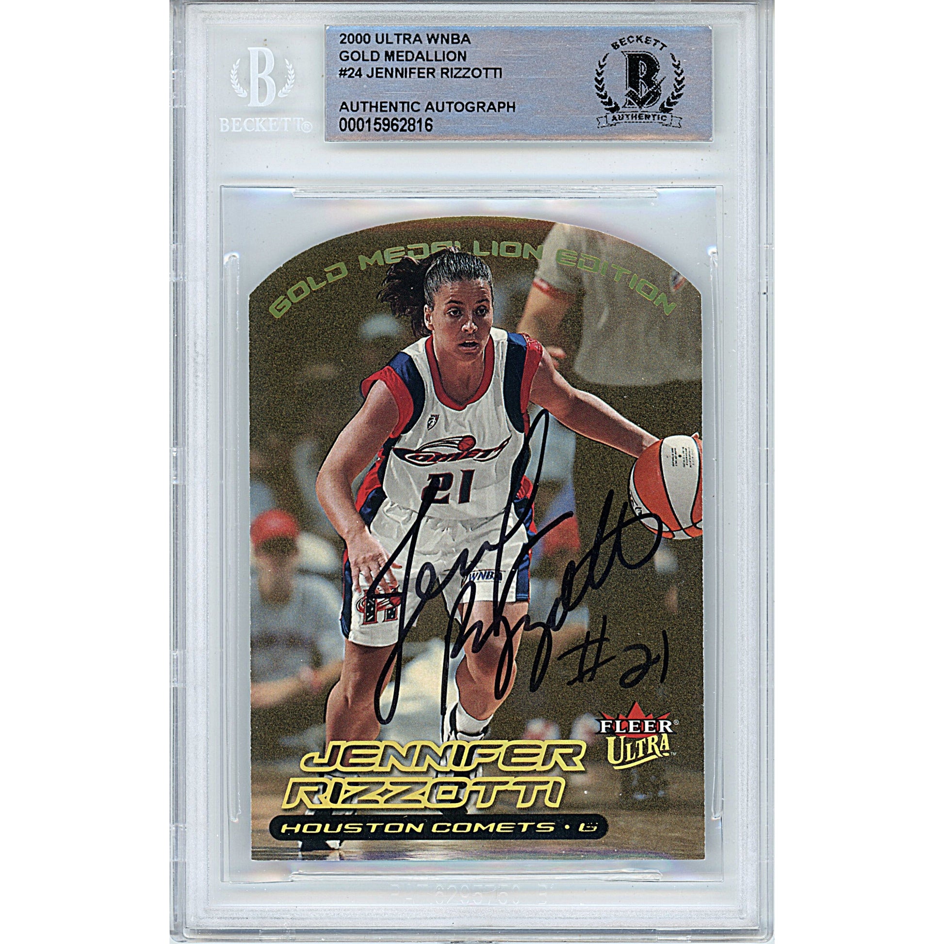2000 Fleer Ultra WNBA Gold Medallion #24 — Jennifer Rizzotti Houston Comets Autographed Trading Card — Beckett Authentication — authenticated by Beckett Authentication Services (BAS).