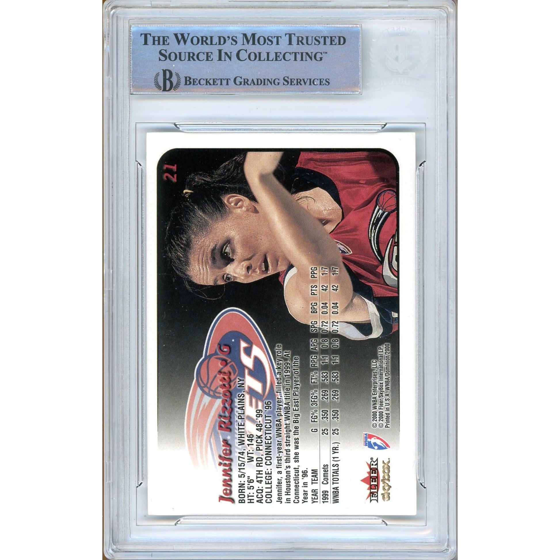2000 SkyBox — Jennifer Rizzotti Comets Autographed Trading Card — Beckett Authentication