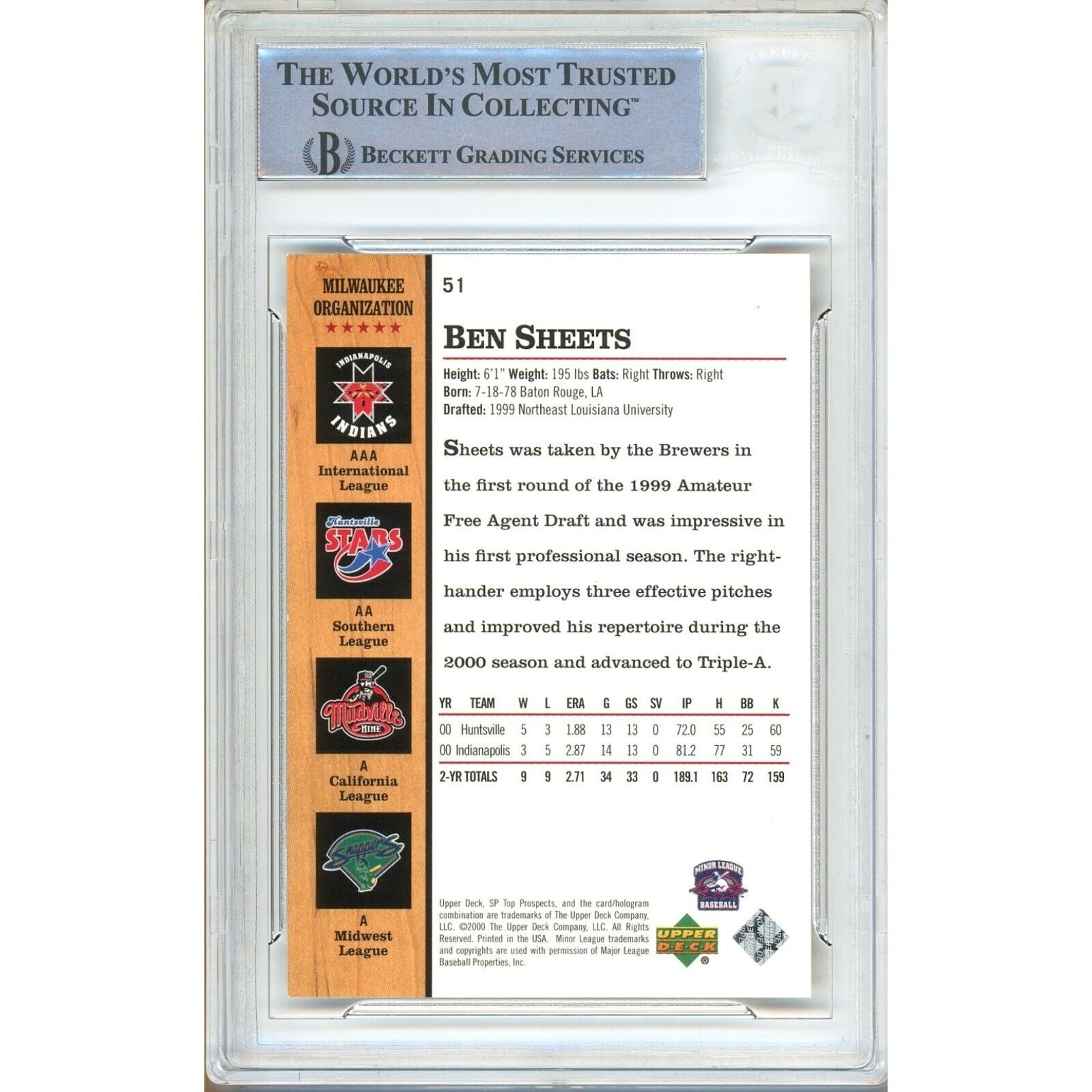 2001 SP Top Prospects #51 — Ben Sheets Milwaukee Brewers Autographed Trading Card — Beckett Authentication — authenticated by Beckett Authentication Services (BAS).
