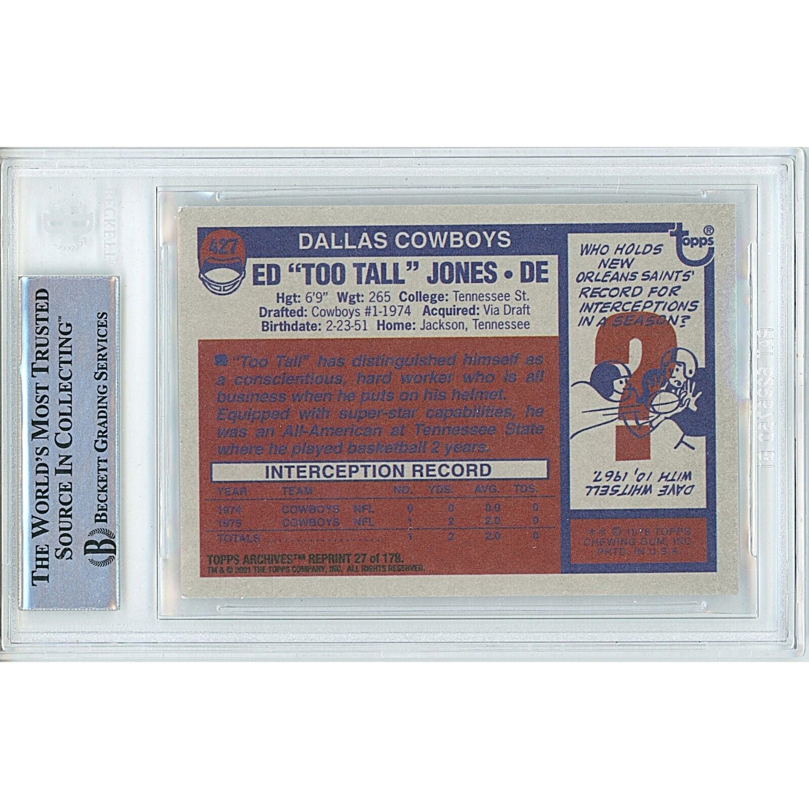2001 Topps Archives #27 — Ed Too Tall Jones Dallas Cowboys Autographed Trading Card — Beckett Authentication — authenticated by Beckett Authentication Services (BAS).