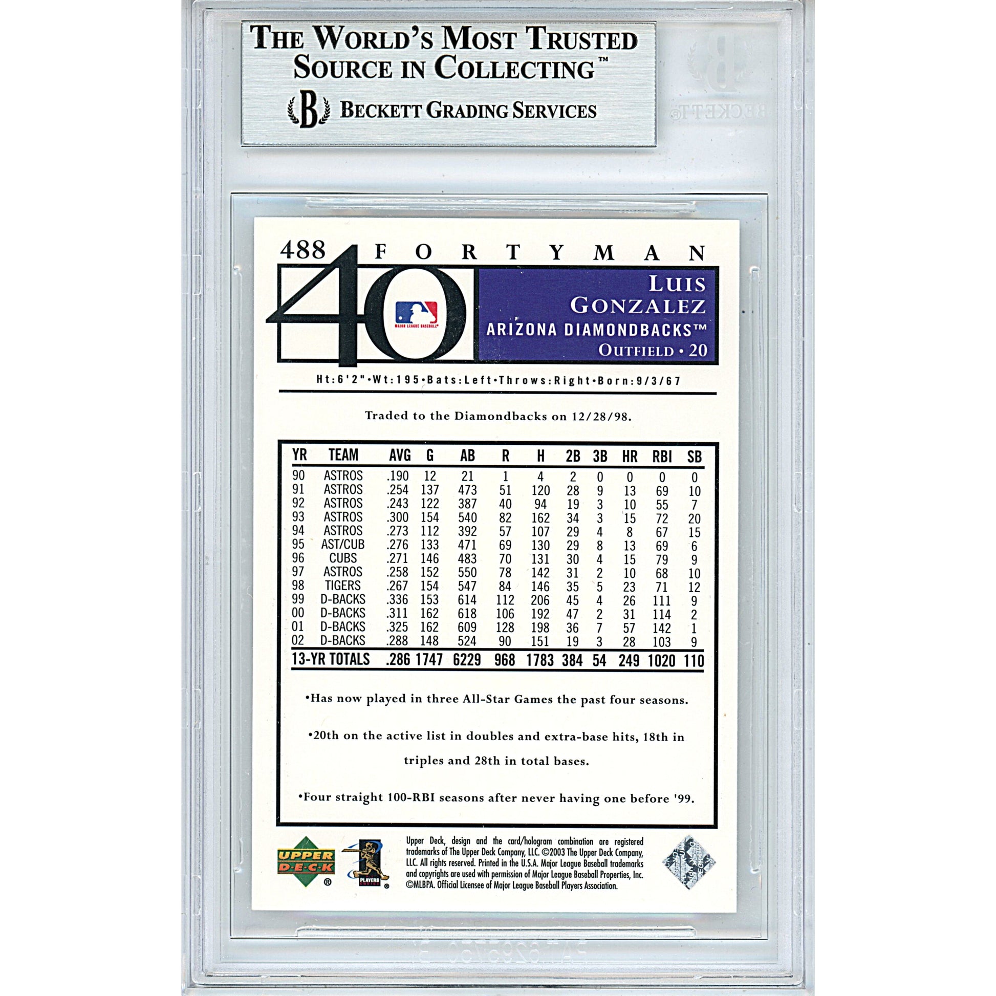 2003 Upper Deck 40-Man #488 — Luis Gonzalez Arizona Diamondbacks Autographed Trading Card — Beckett Authentication