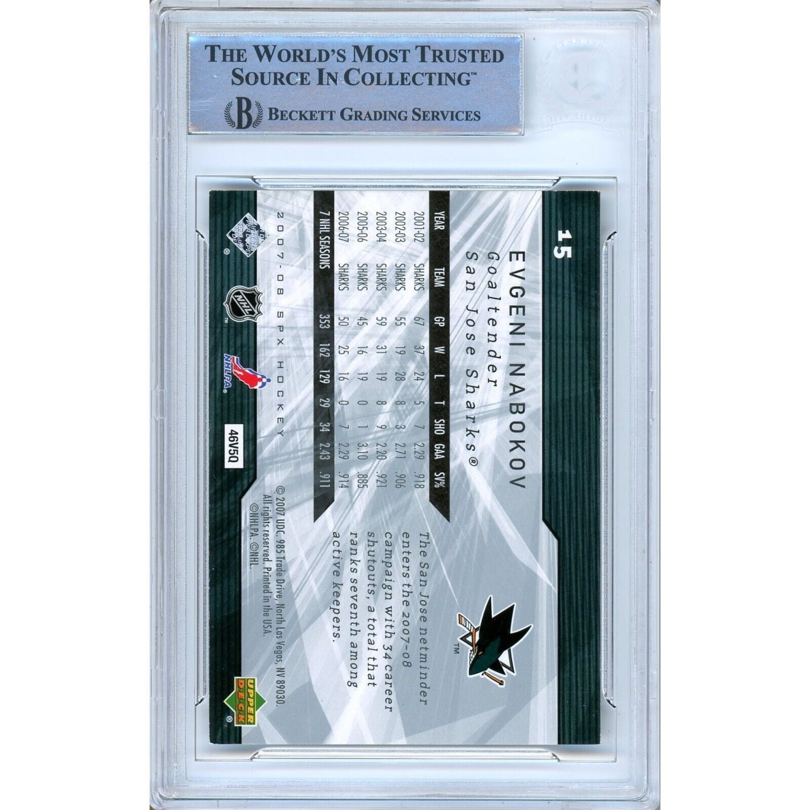 2007-08 Upper Deck SPx #15 — Evgeni Nabokov San Jose Sharks Autographed Trading Card — Beckett Authentication — authenticated by Beckett Authentication Services (BAS).