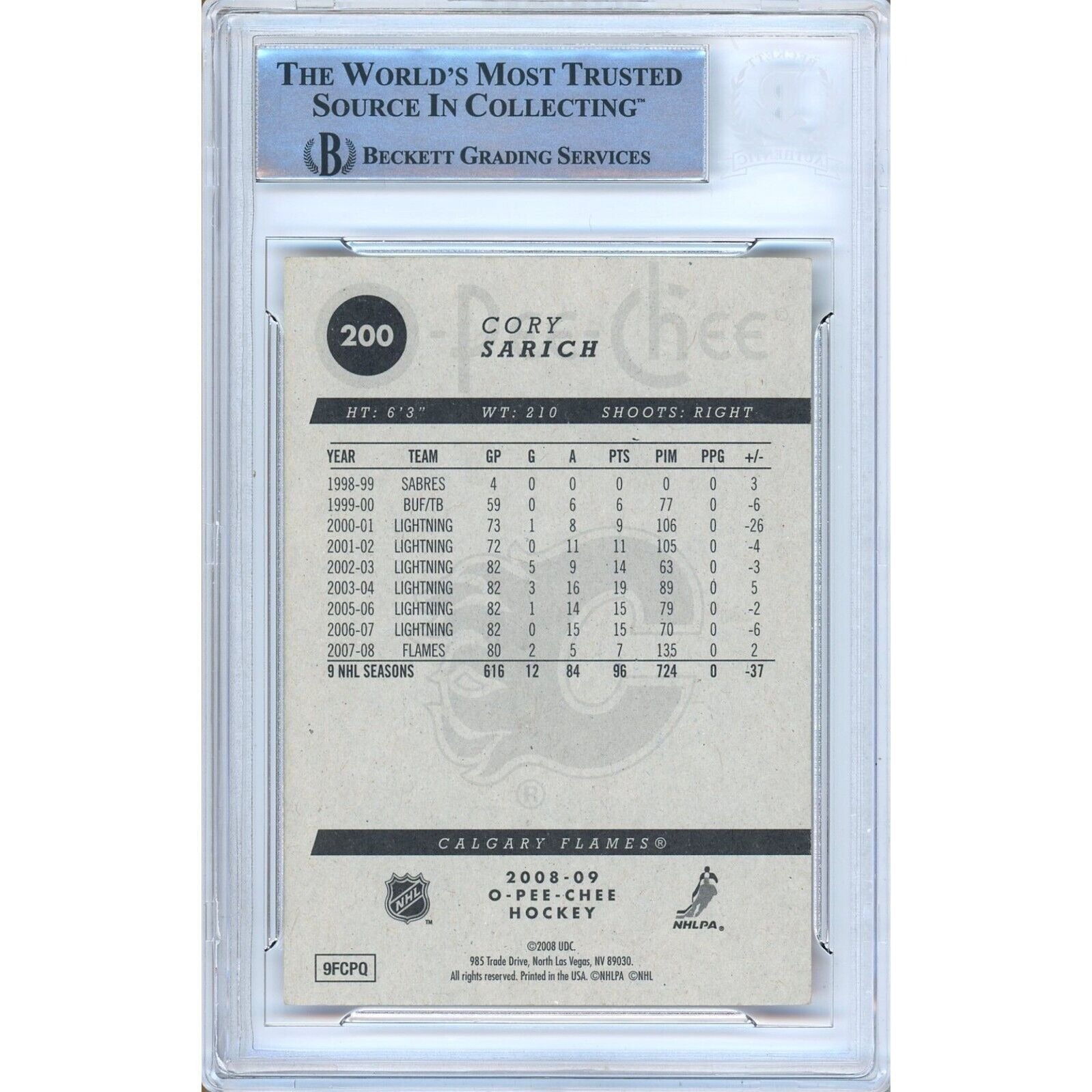 2008-09 O-Pee-Chee #200 — Cory Sarich Calgary Flames Autographed Trading Card — Beckett Authentication — authenticated by Beckett Authentication Services (BAS).
