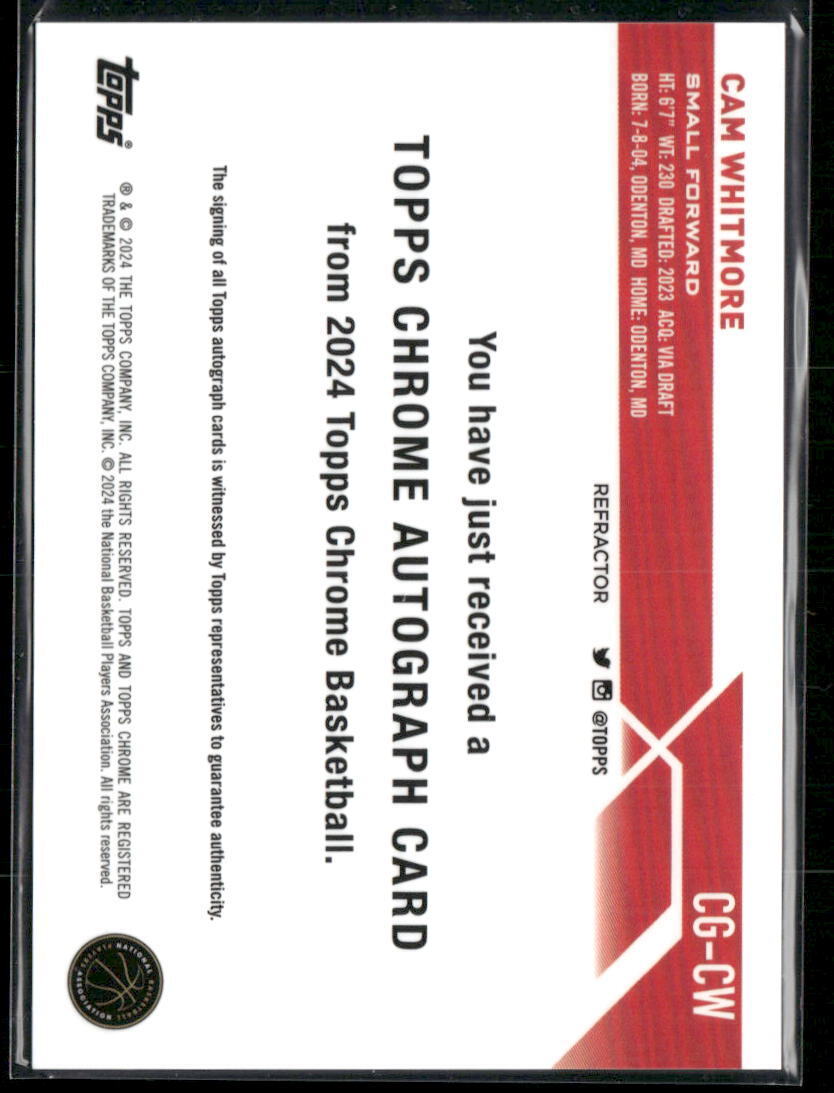 2023-24 Topps Chrome #CG-CW Cam Whitmore Autographs Purple Refractors