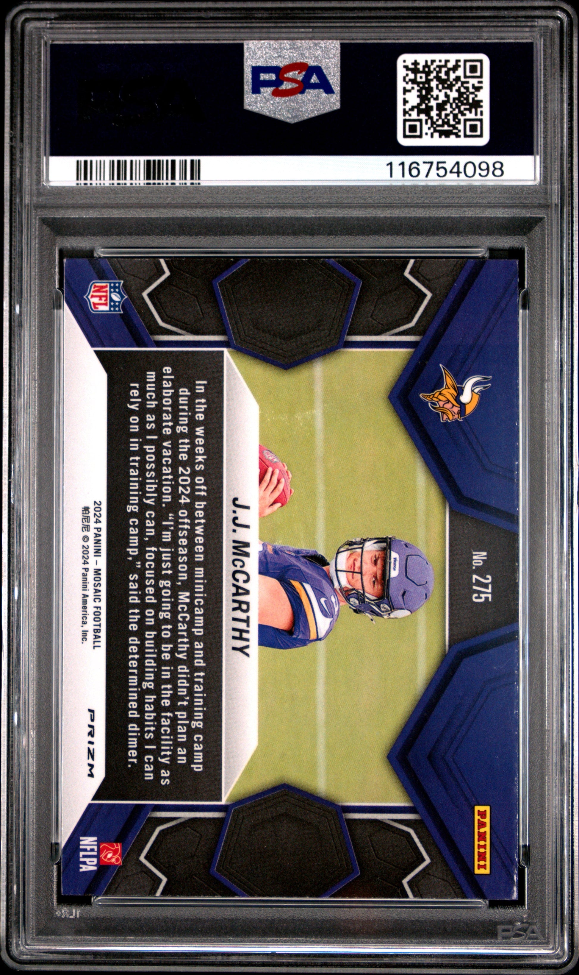2024 Panini Mosaic JJ McCarthy #275 Reactive Blue Rookie RC Football Card PSA 10 Gem Mint