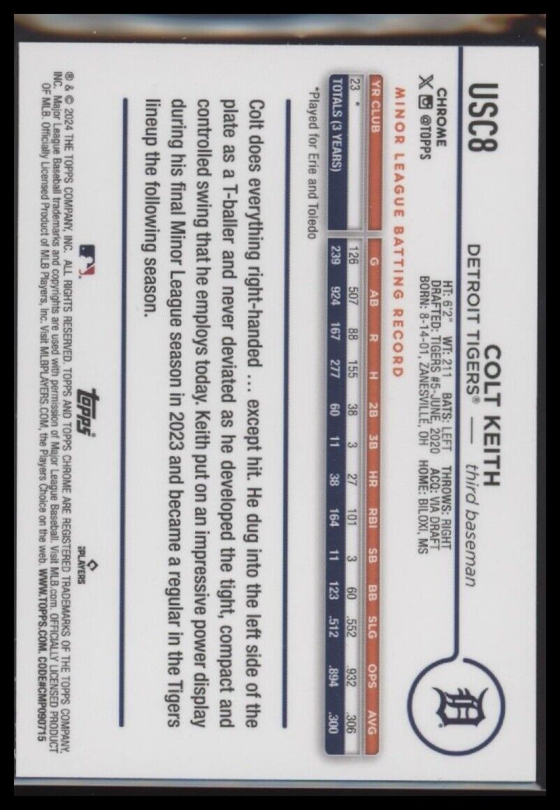 2024 Topps Chrome Update #USC8 Colt Keith Purple Refractors