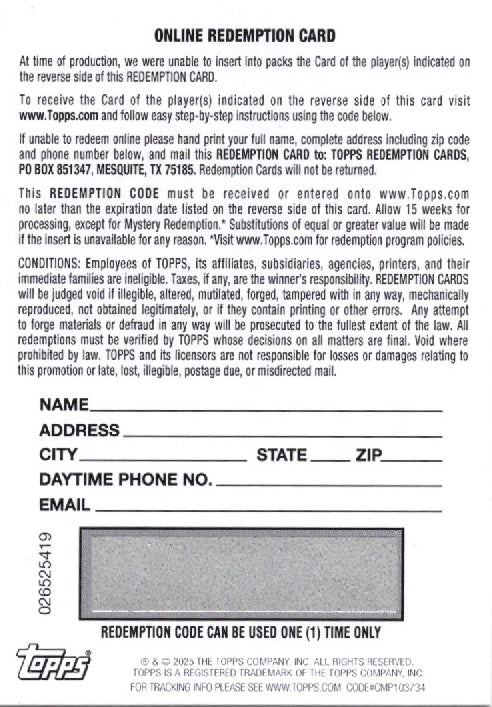 2025 Topps Now Cal Raleigh #881 Used Base Relic Orange /25 Redemption Seattle Mariners Baseball Card