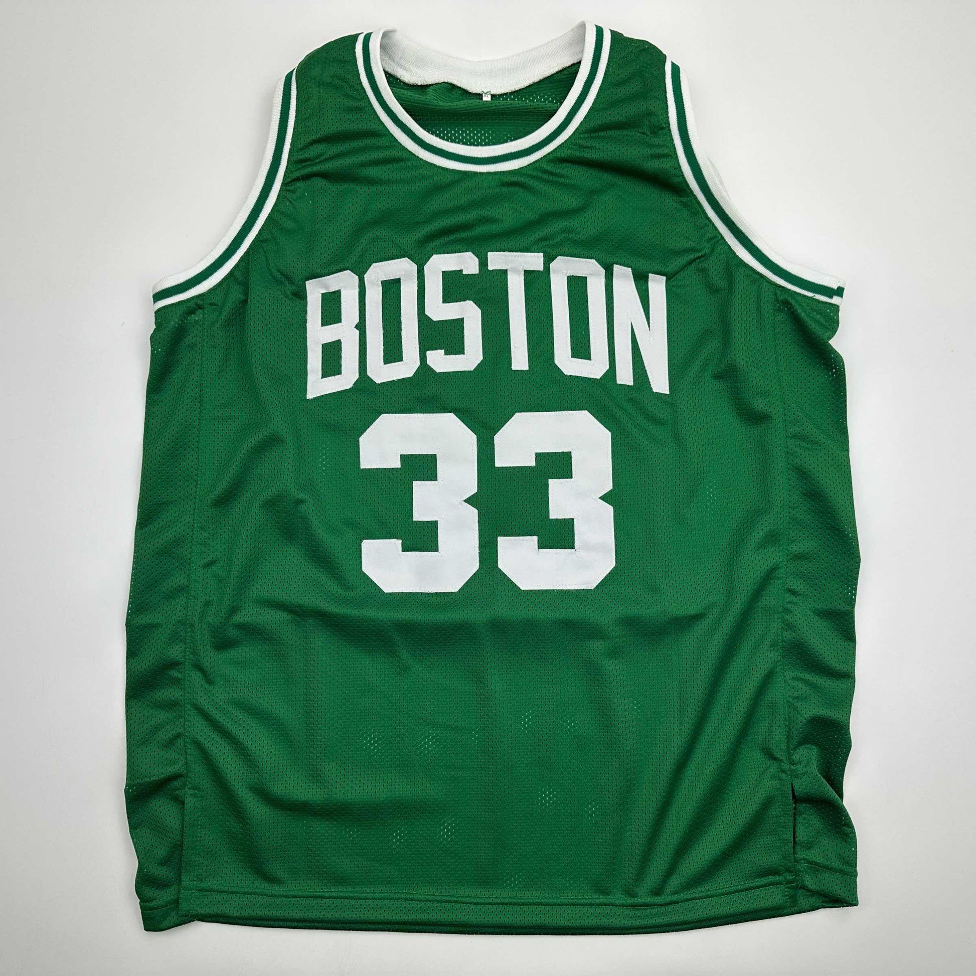 Autographed/Signed Larry Bird Boston Green Basketball Jersey Beckett BAS COA