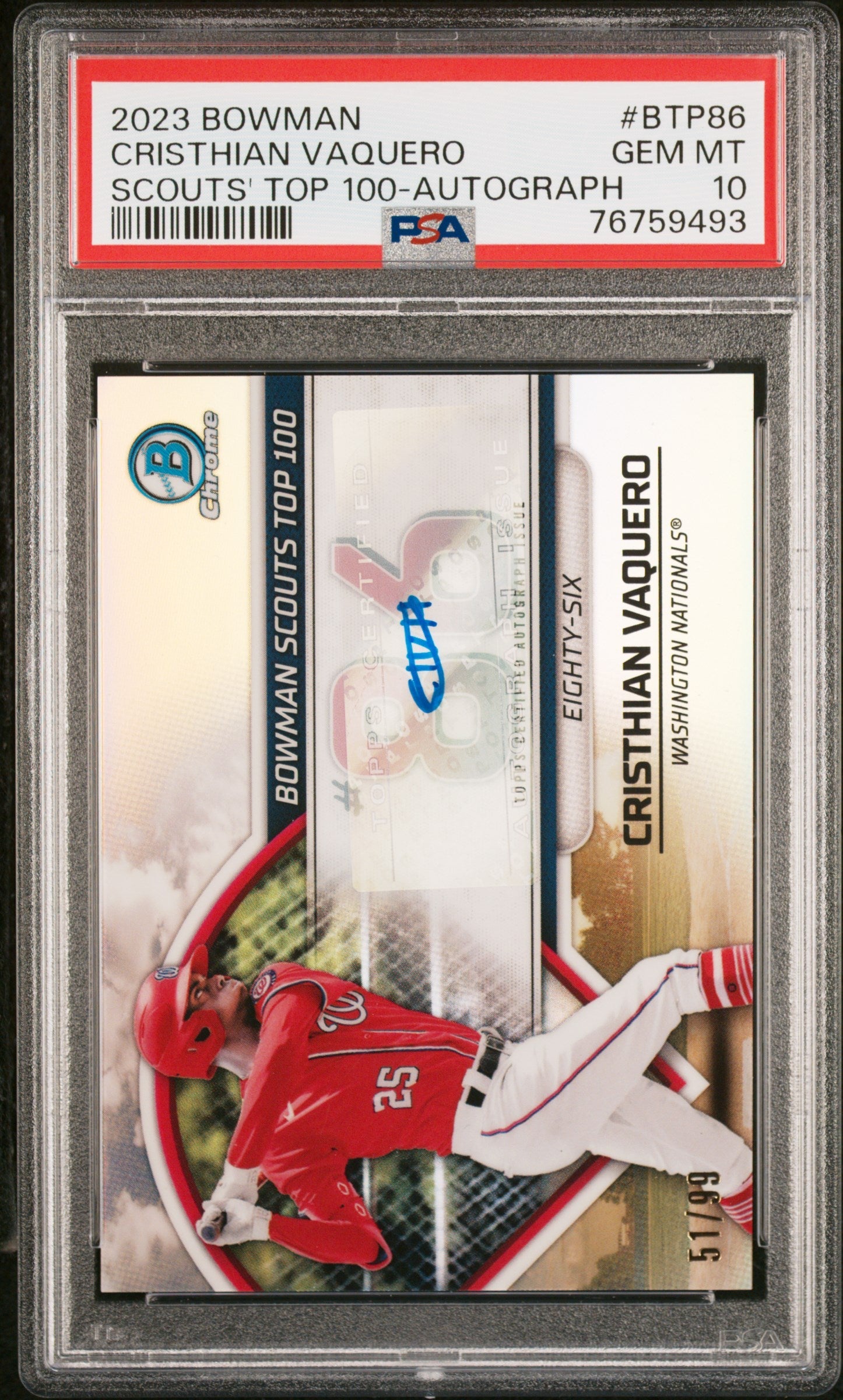 Cristhian Vaquero 2023 Bowman Scouts Top 100 #BTP86 Autograph PSA 10