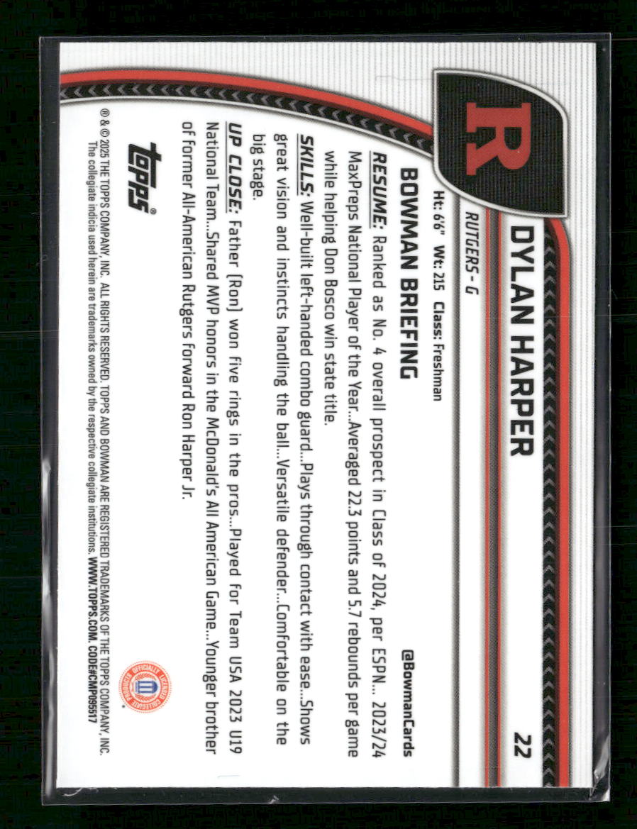 Dylan Harper 2024-25 Bowman University Chrome #22 Blue Refractor #/199