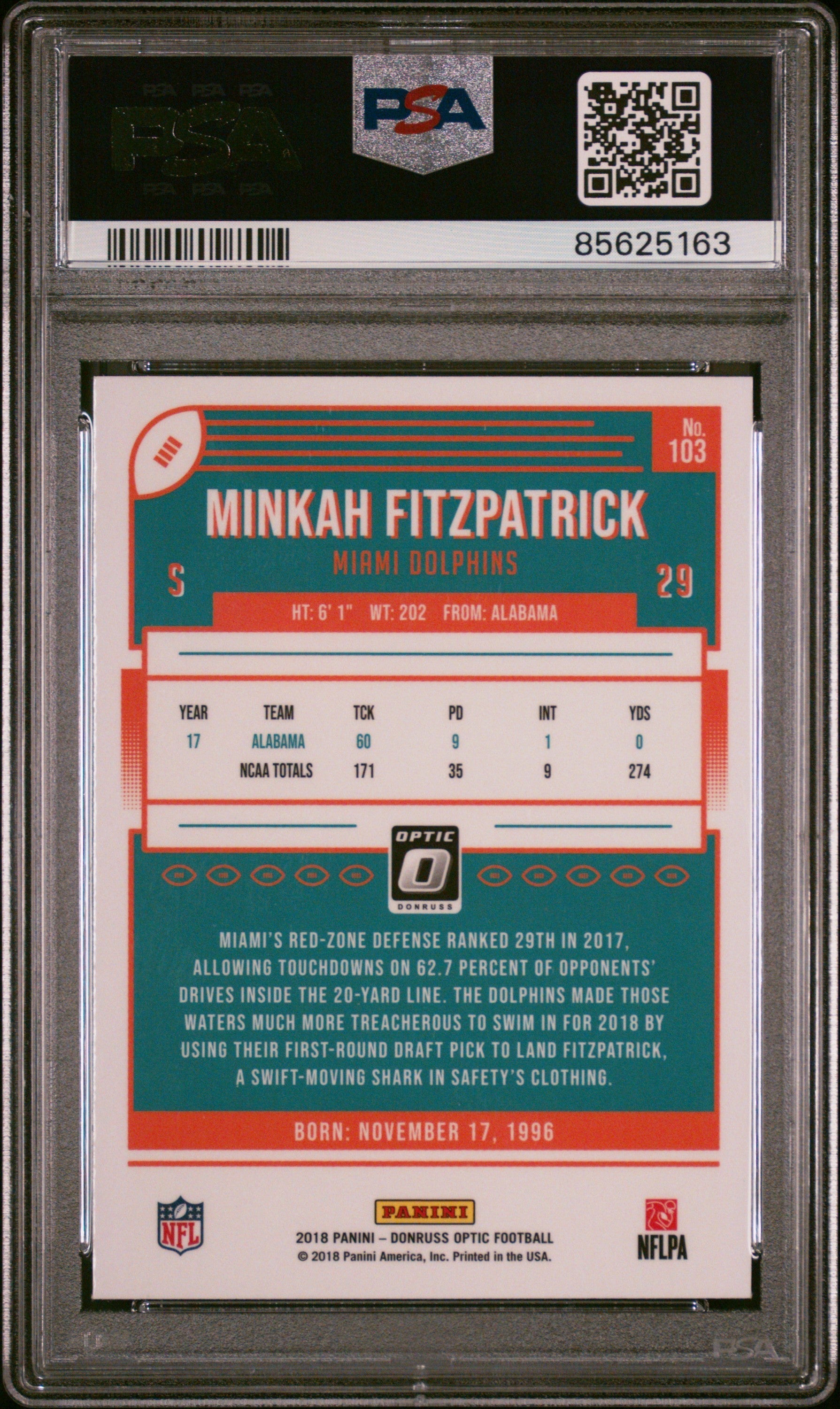 Graded 2018 Panini Donruss Optic Minkah Fitzpatrick #103 Rookie RC Football Card PSA 10 Gem Mint