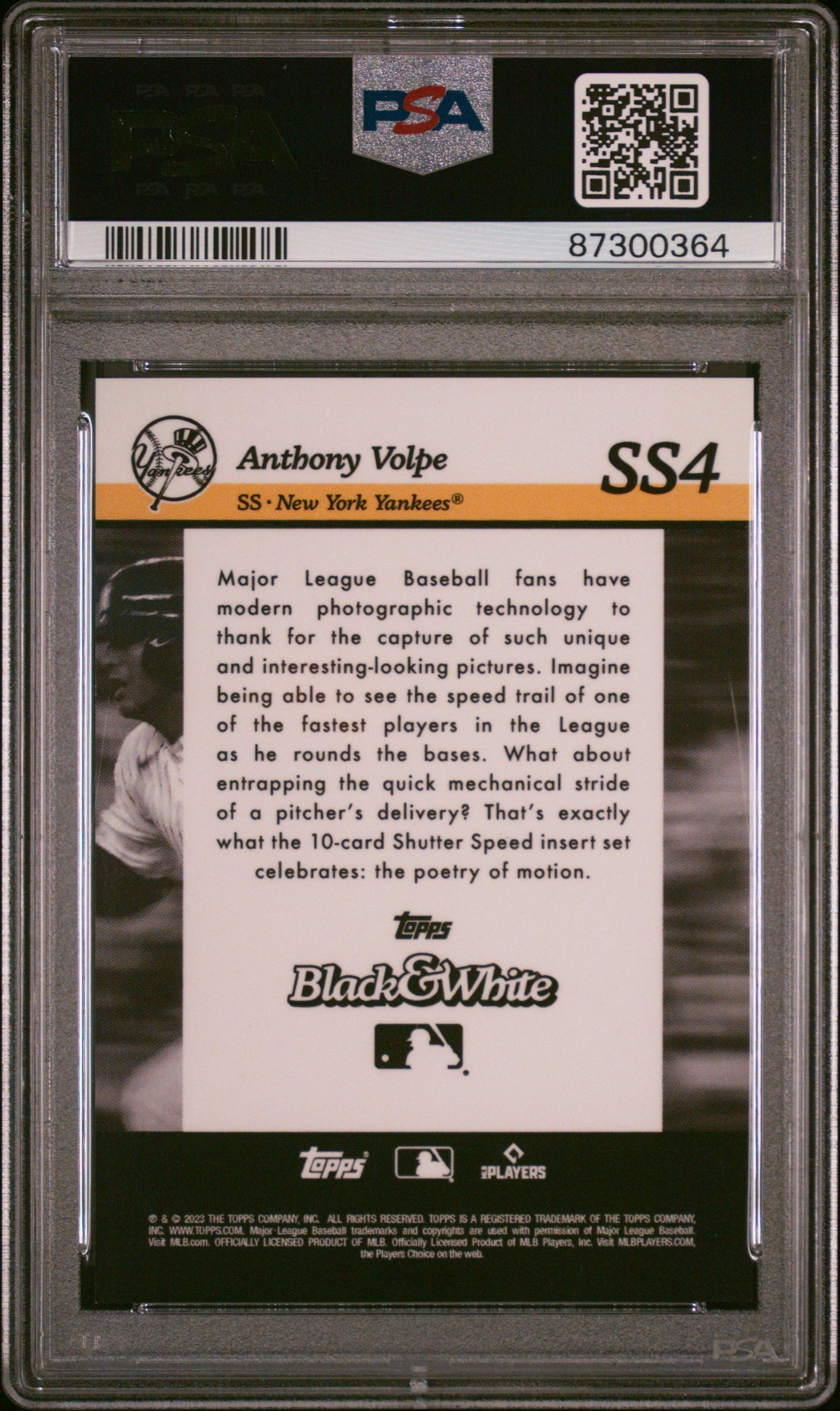 Graded 2023 Topps Black & White Anthony Volpe #SS4 Shutter Speed Rookie RC Baseball Card PSA 10 Gem Mint