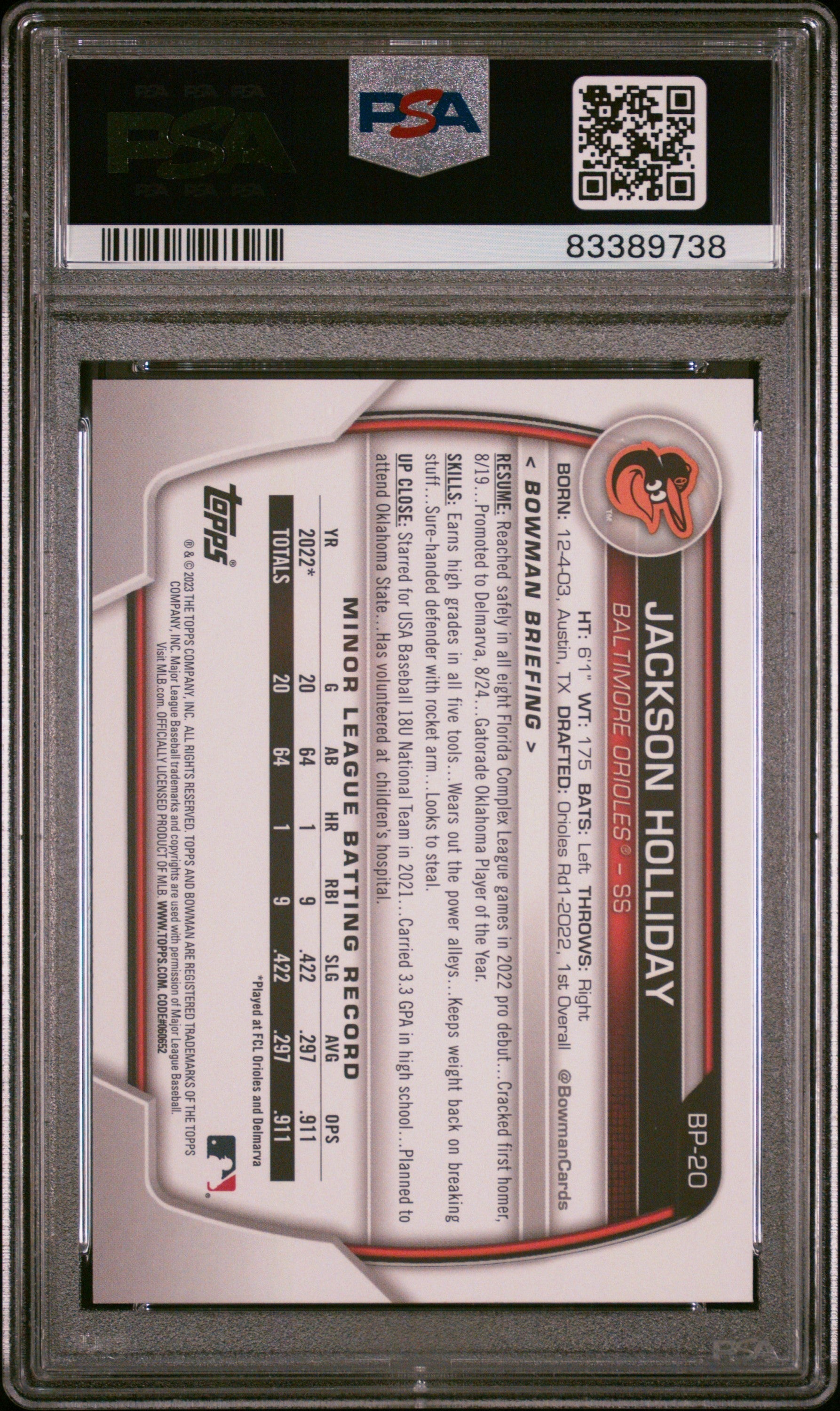 Graded 2023 Topps Bowman Jackson Holliday #BP20 Paper Prospects Rookie RC Baseball Card PSA 10 Gem Mint