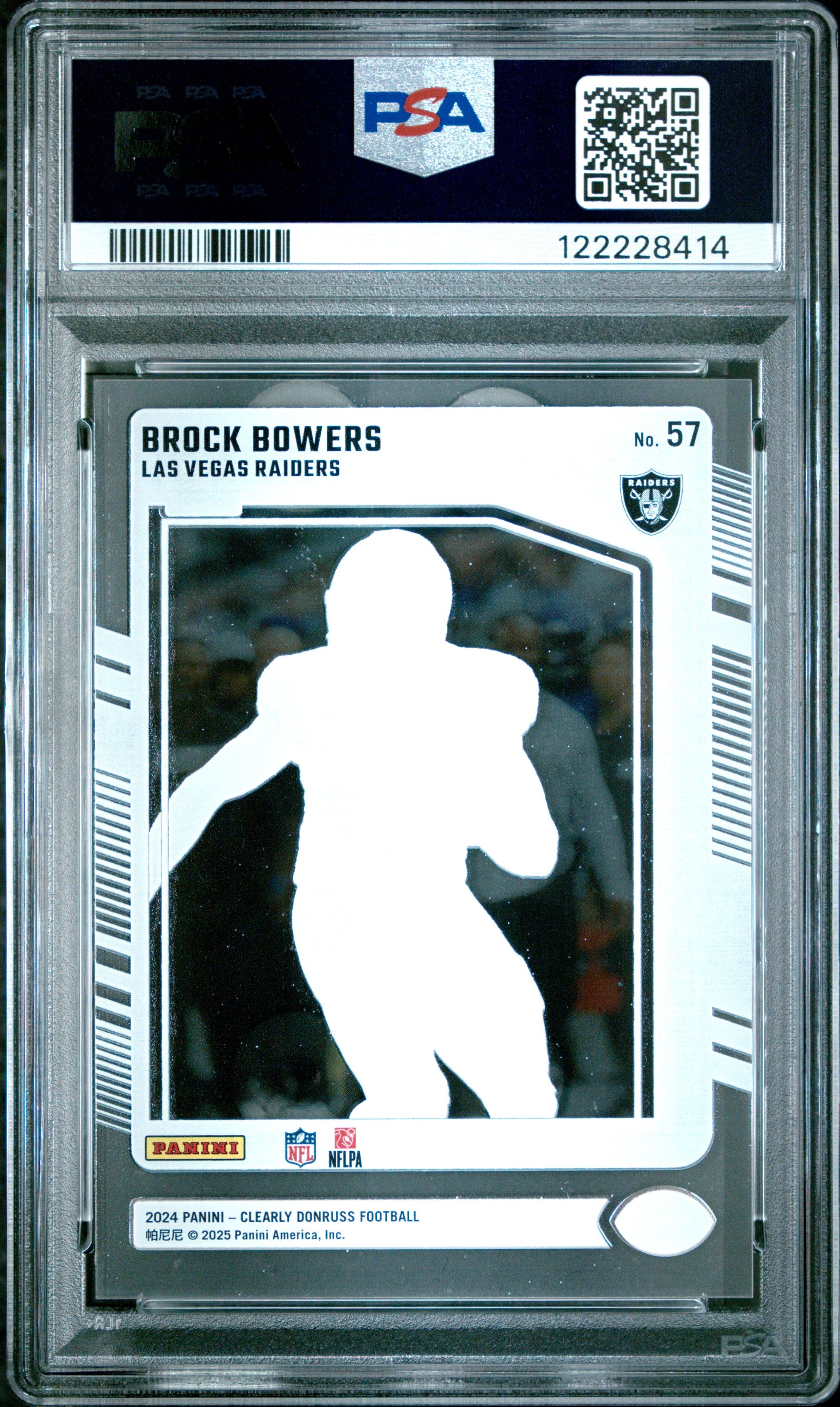 Graded 2024 Panini Clearly Donruss Brock Bowers #57 Rookie RC Football Card PSA 8 Near Mint