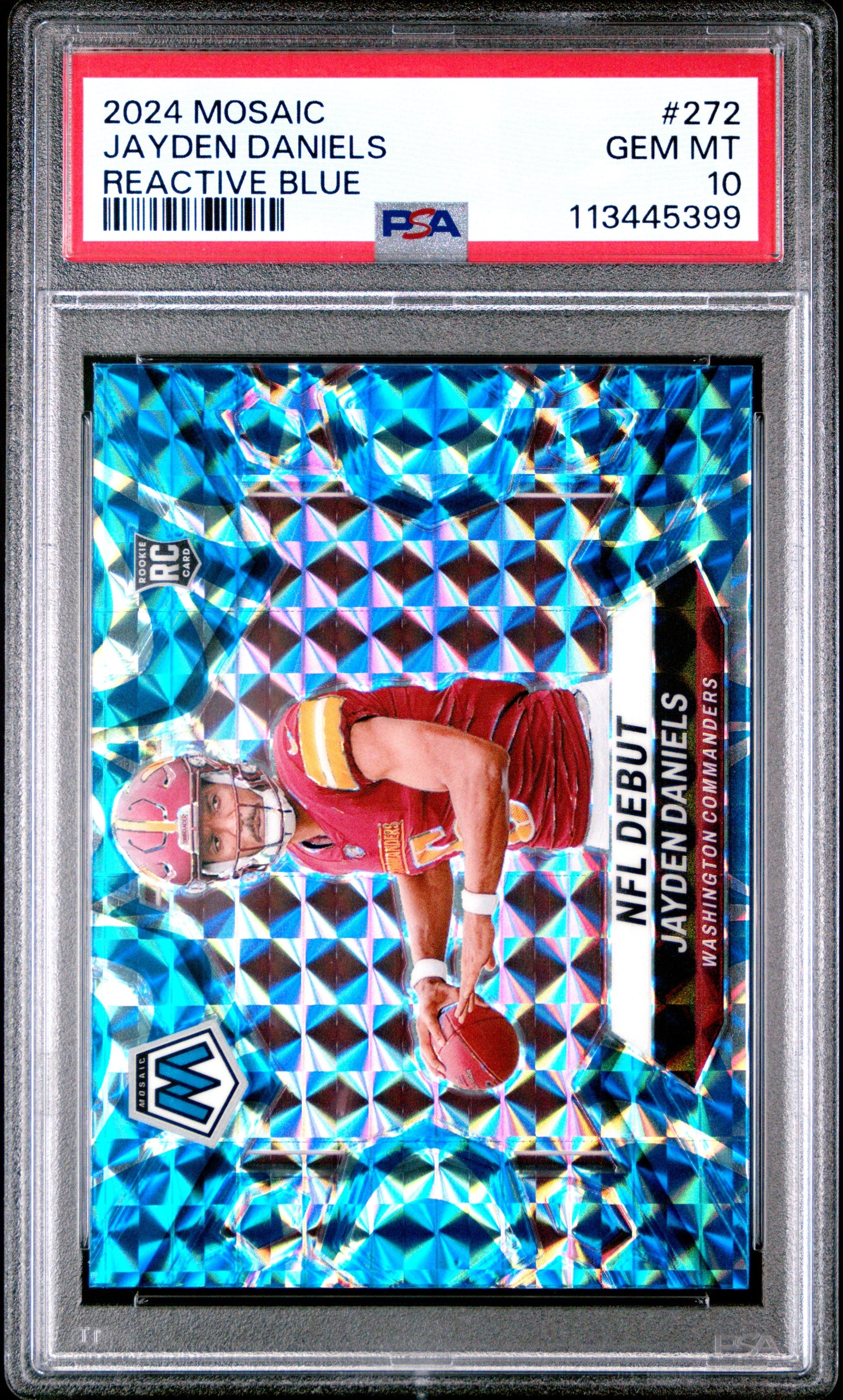 Graded 2024 Panini Mosaic Jayden Daniels #272 Reactive Blue Rookie RC Football Card PSA 10 Gem Mint