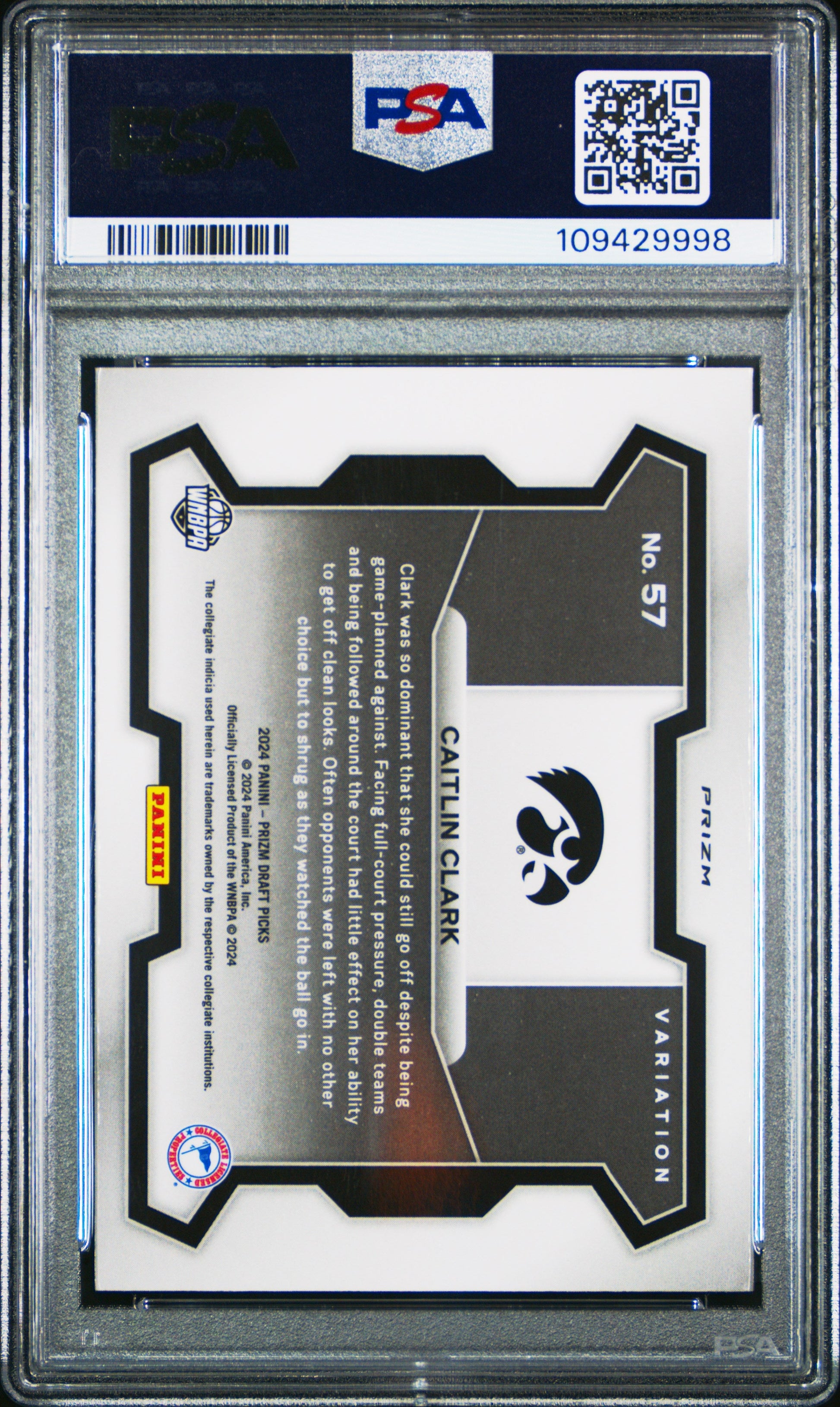Graded 2024 Panini Prizm Draft Picks Caitlin Clark #57 Variation Red Ice Rookie RC Basketball Card PSA 10 Gem Mint