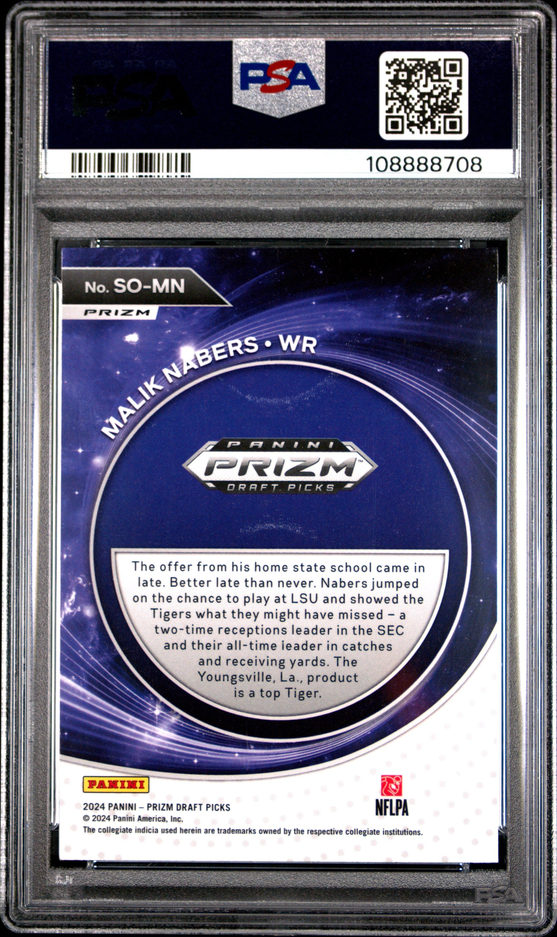 Graded 2024 Panini Prizm Draft Picks Malik Nabers #SOMN Student Orientation Red Ice Rookie RC Football Card PSA 10 Gem Mint
