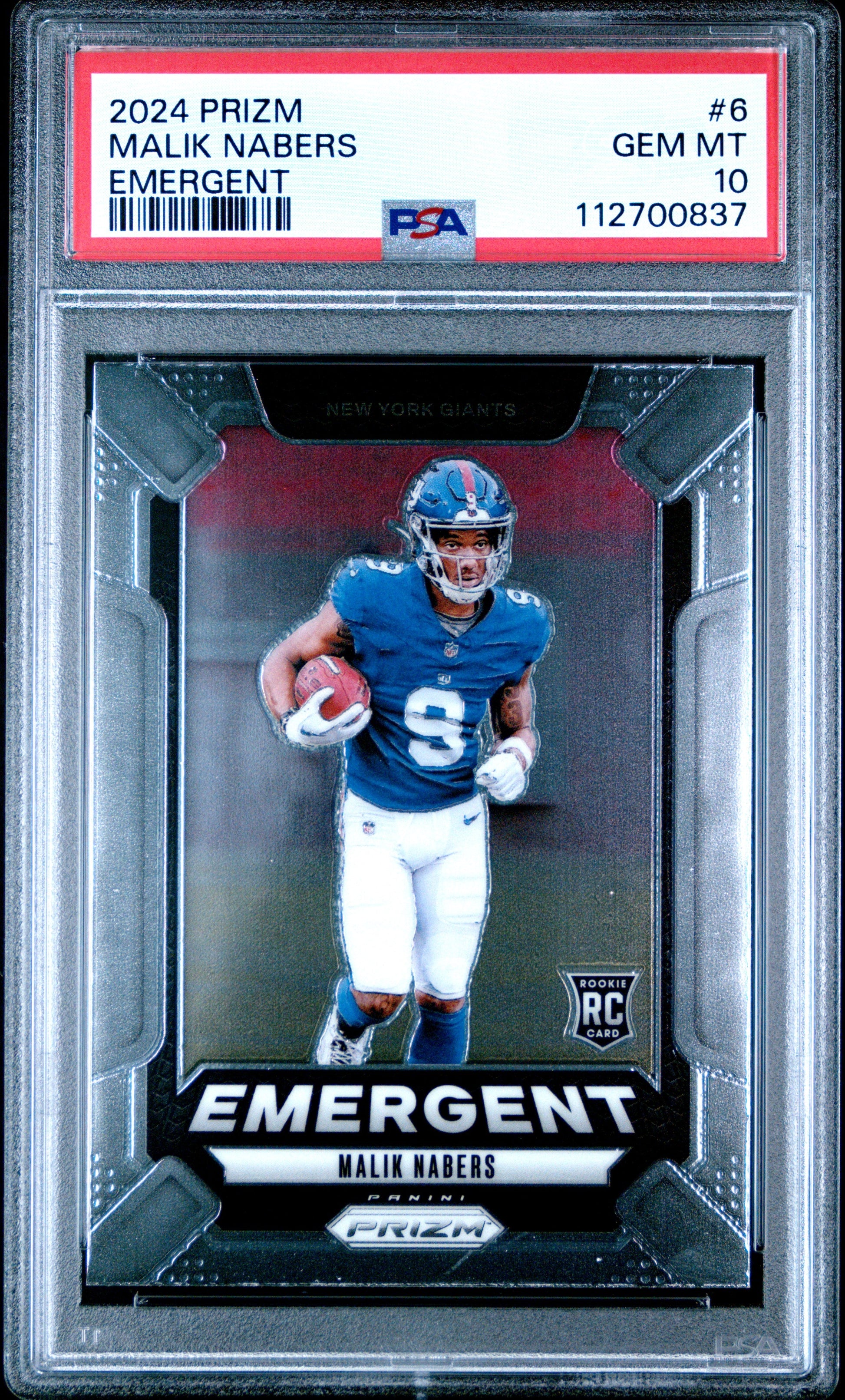 Graded 2024 Panini Prizm Malik Nabers #6 Emergent Rookie RC Football Card PSA 10 Gem Mint