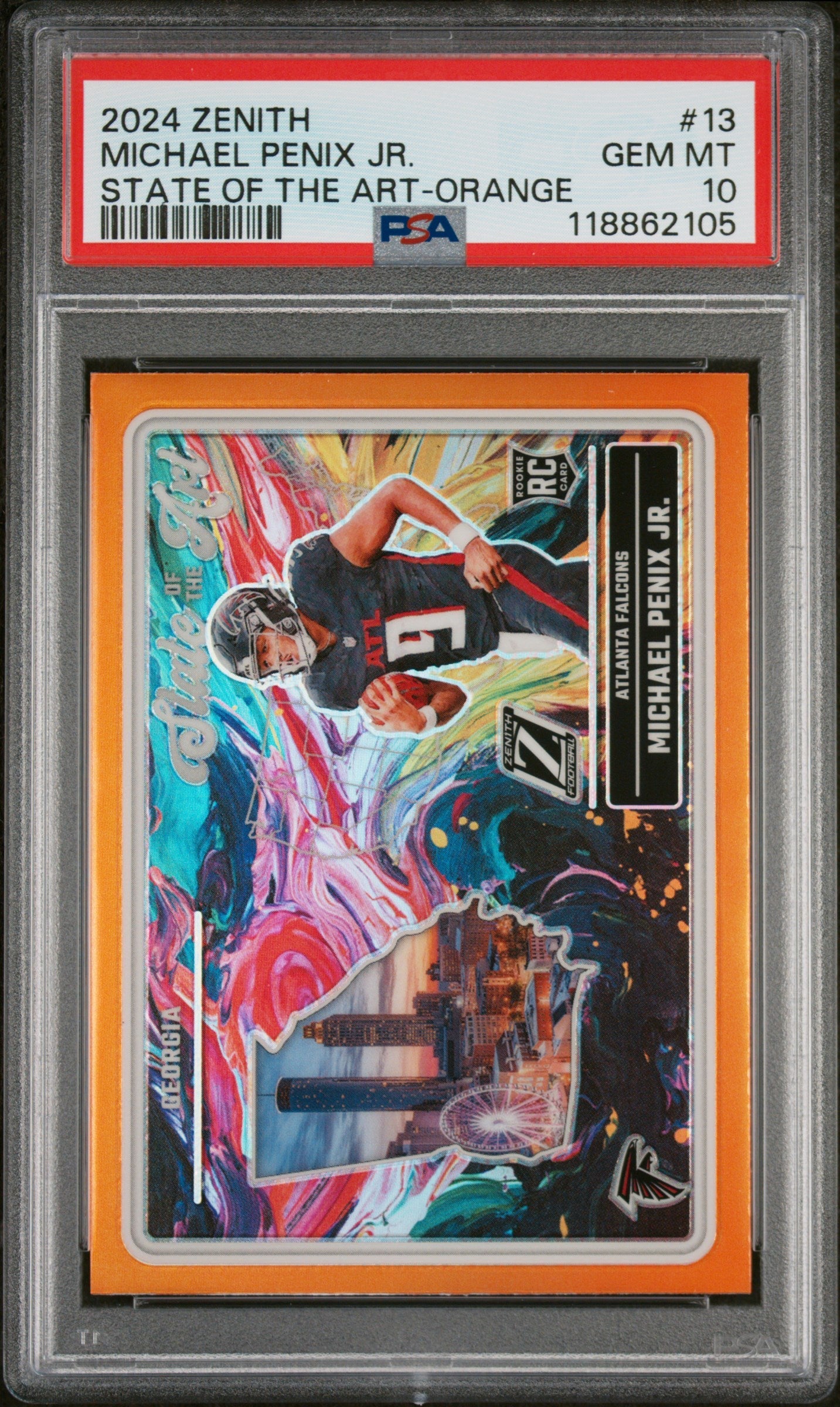 Graded 2024 Panini Zenith Michael Penix Jr #13 State of the Art Orange Rookie RC Football Card PSA 10 Gem Mint