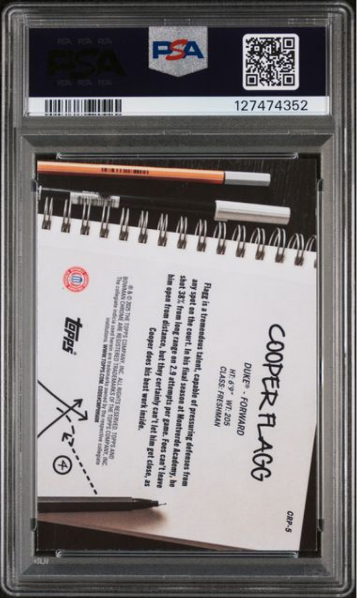 Graded 2024 Topps Bowman Chrome U Cooper Flagg #CRP5 College Rule Playbook Xfractor Rookie RC Basketball Card PSA 10 Gem Mint