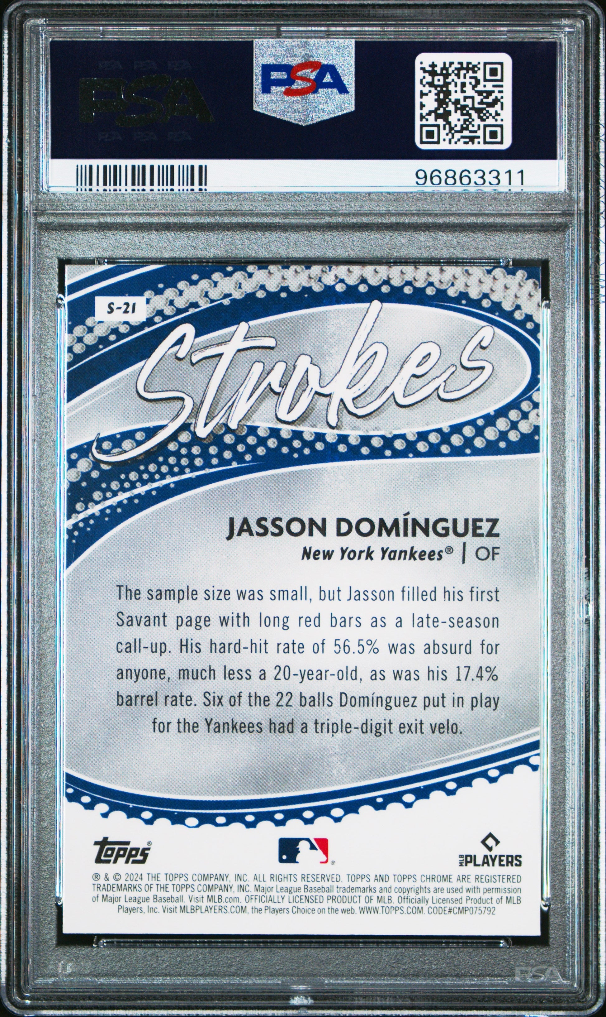 Graded 2024 Topps Chrome Jasson Dominguez #S21 Strokes Rookie RC Baseball Card PSA 10 Gem Mint