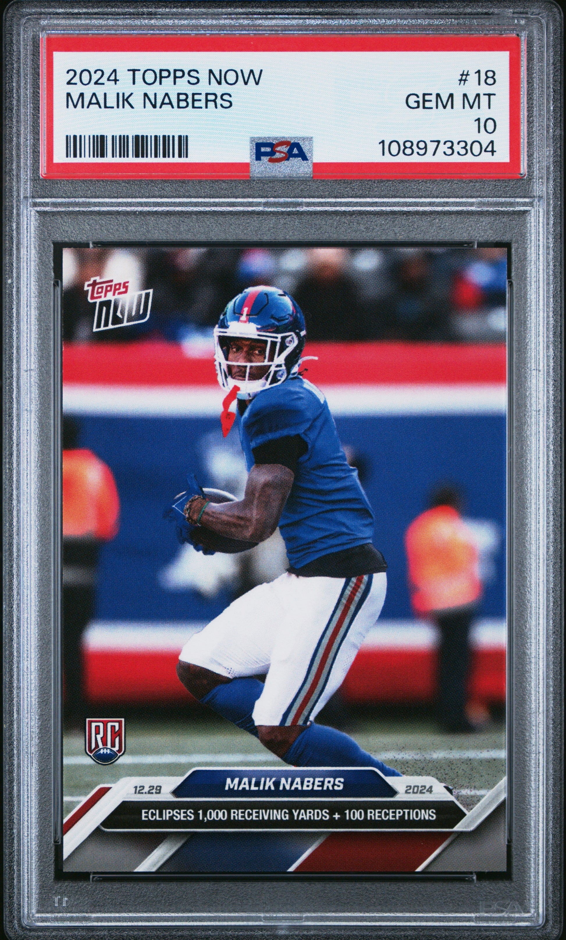 Graded 2024 Topps Now Malik Nabers #18 Rookie RC Football Card PSA 10 Gem Mint