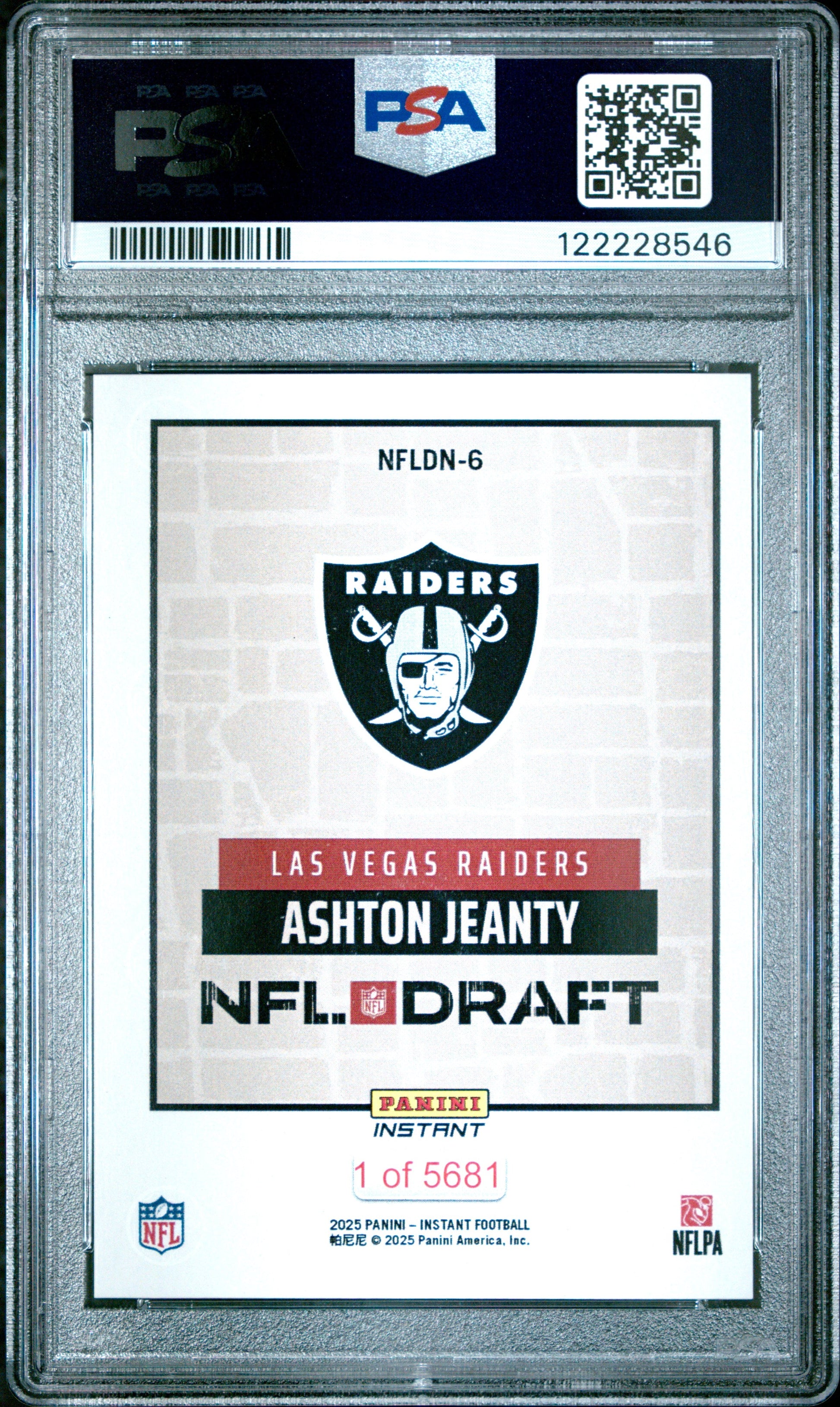 Graded 2025 Panini Instant Ashton Jeanty #NFLDN6 NFL Draft Night Rookie RC Football Card PSA 9 Mint