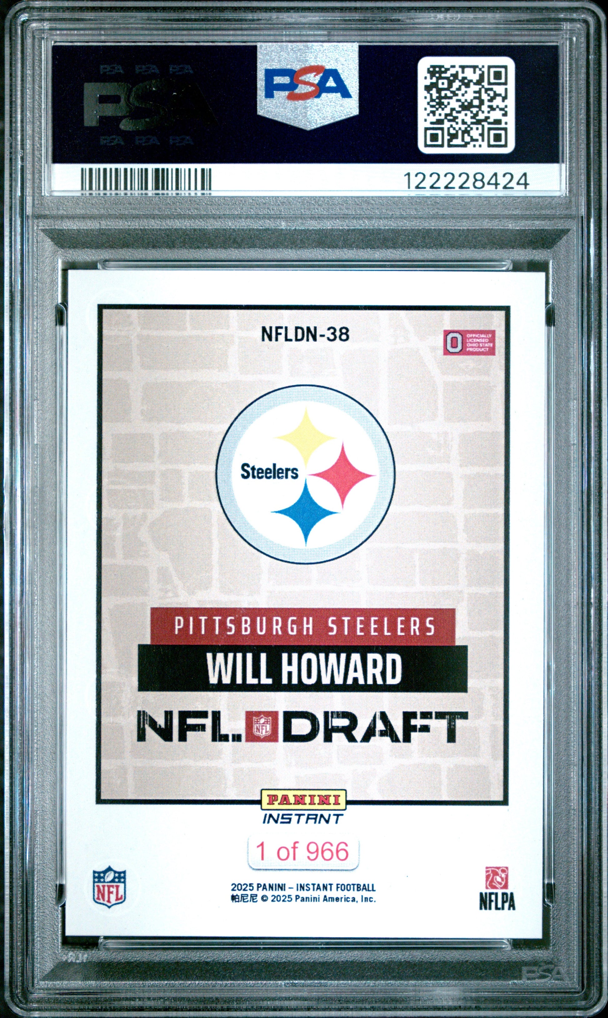 Graded 2025 Panini Instant Will Howard #NFLDN38 NFL Draft Night Rookie RC Football Card PSA 10 Gem Mint