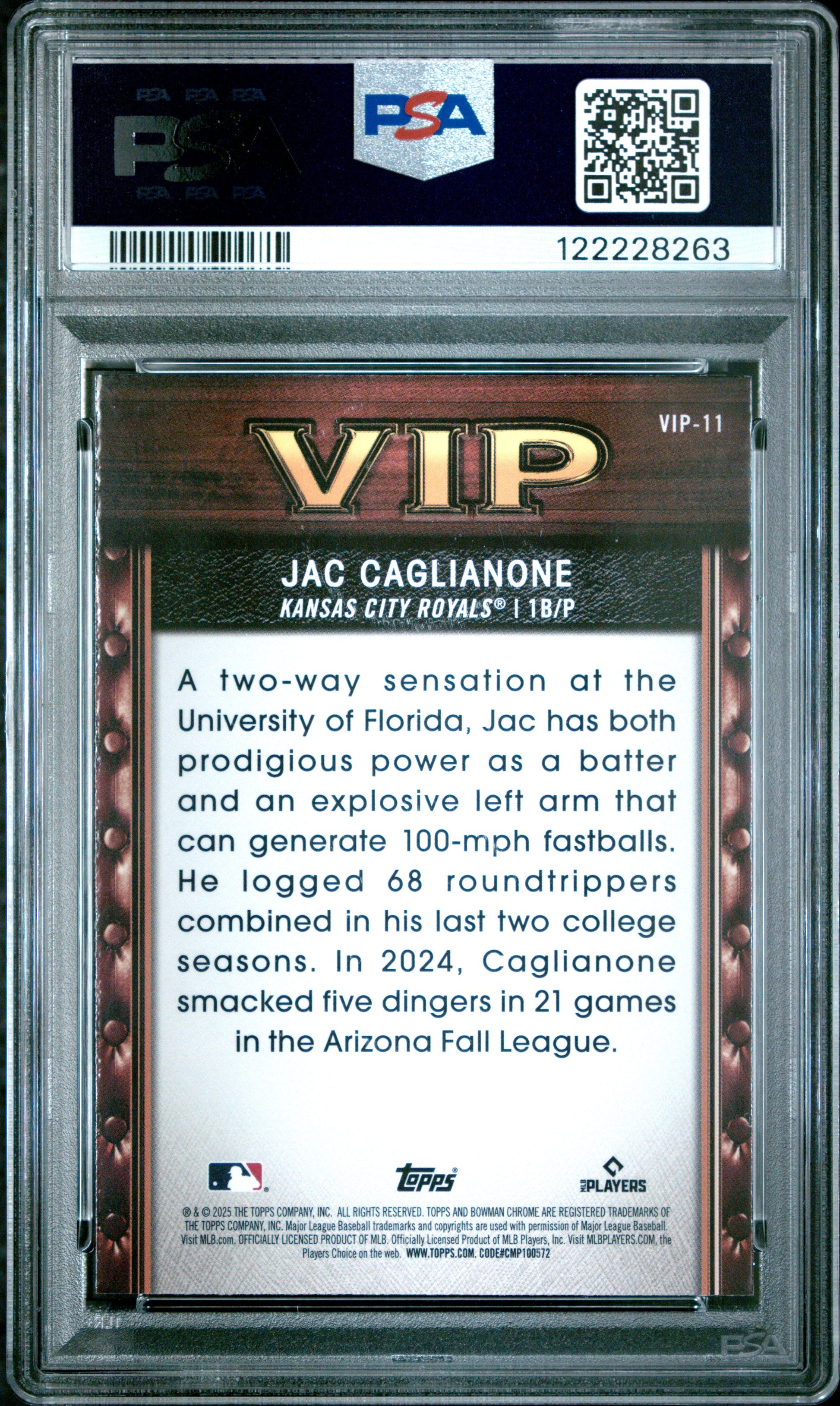 Graded 2025 Topps Bowman Jac Caglianone #VIP11 Very Important Prospects Rookie RC Baseball Card PSA 9 Mint