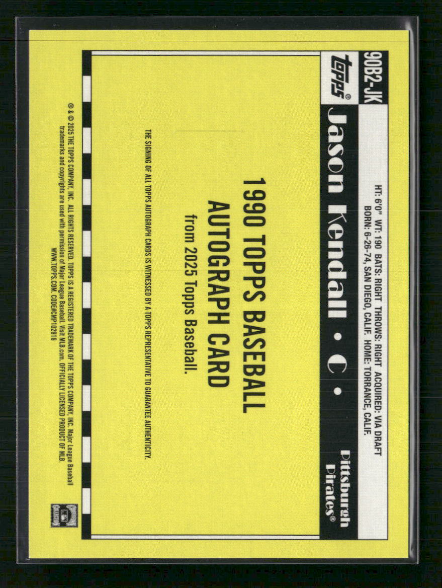 Jason Kendall 2025 Topps #90B2-JK 1990 Topps Baseball 35th Anniversary Auto