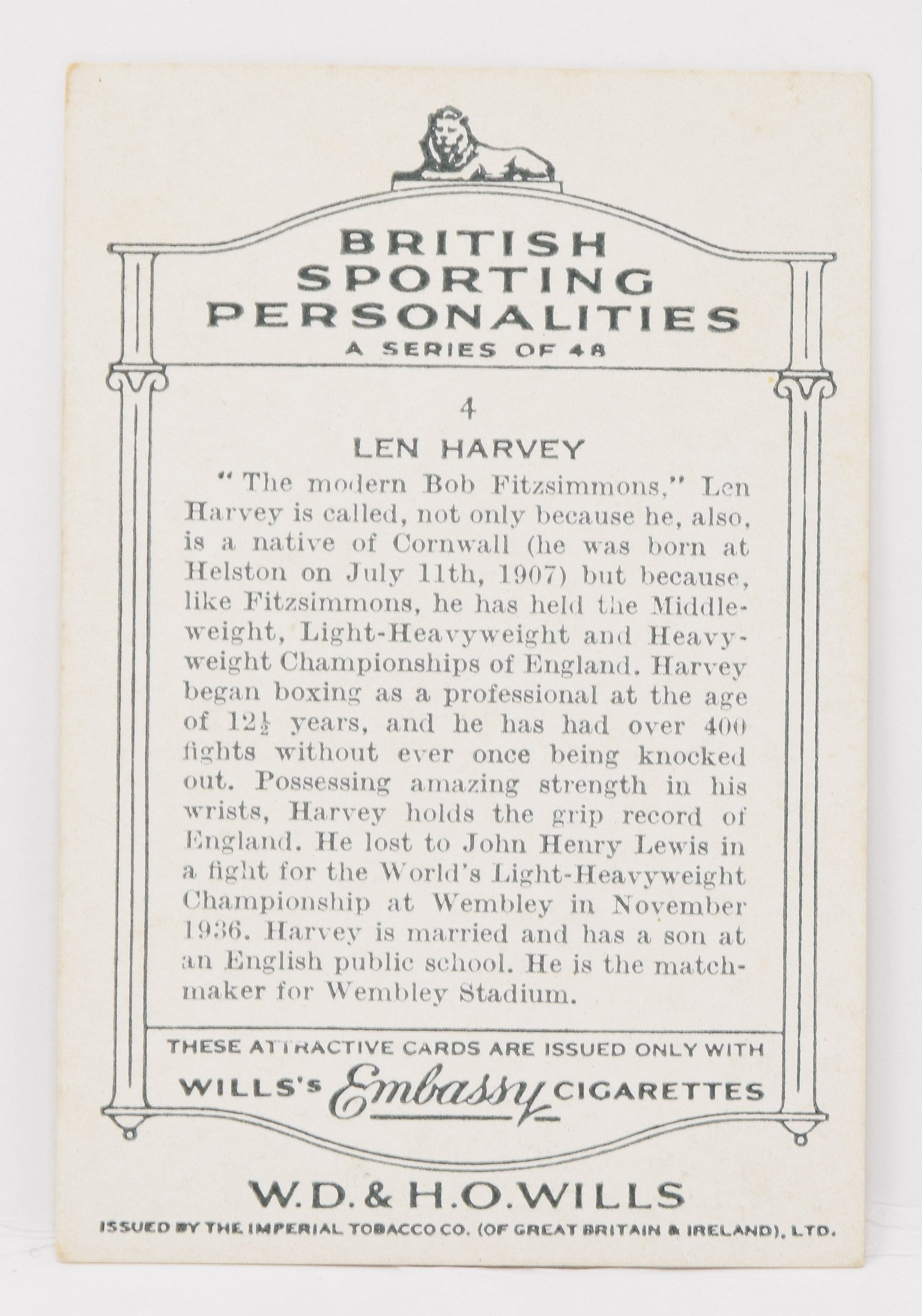 Len Harvey #4 WD Wills British Sporting Personalities Boxer Boxing Card 1937