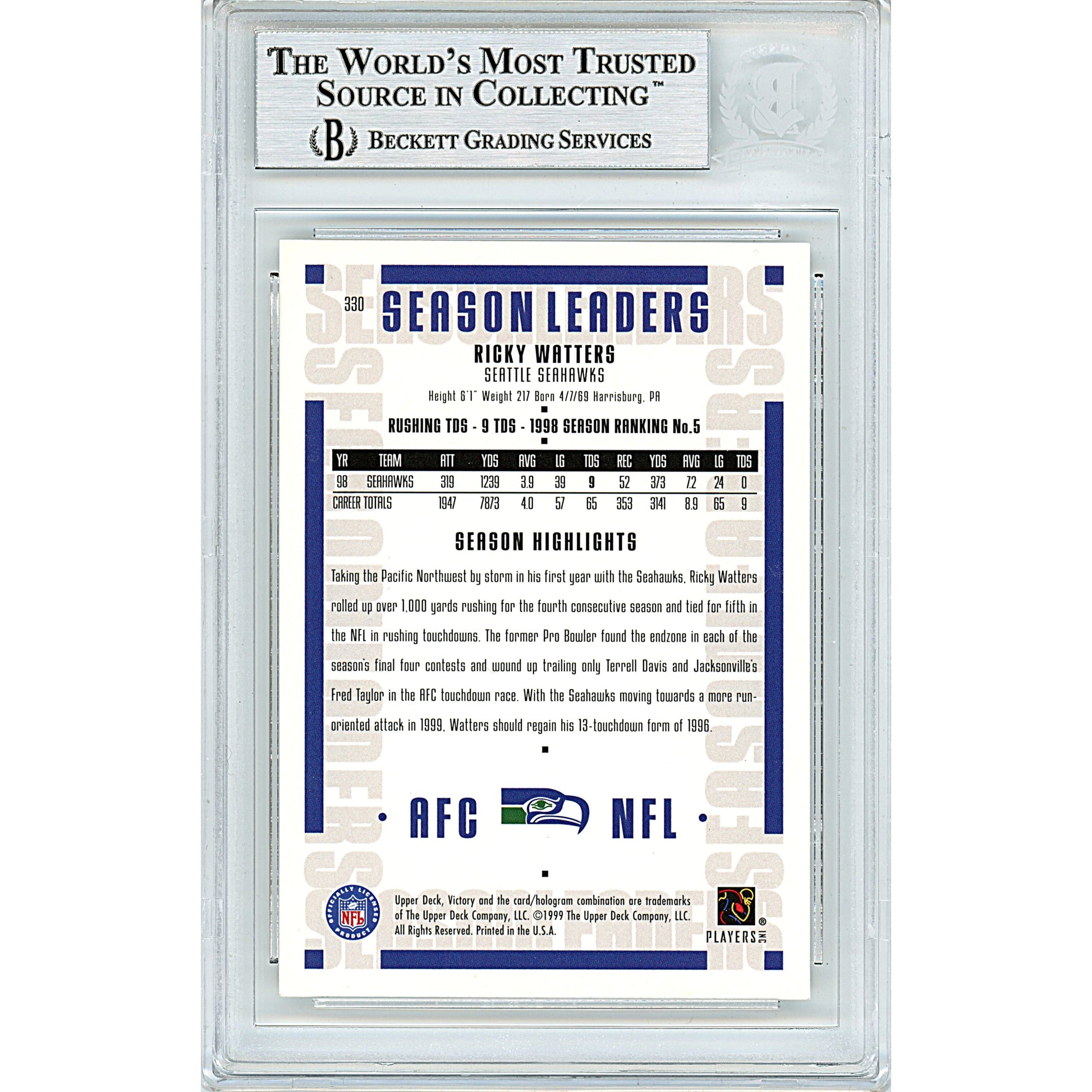 Ricky Watters Signed Seattle Seahawks 1999 Upper Deck Victory Football Card Beckett Slab