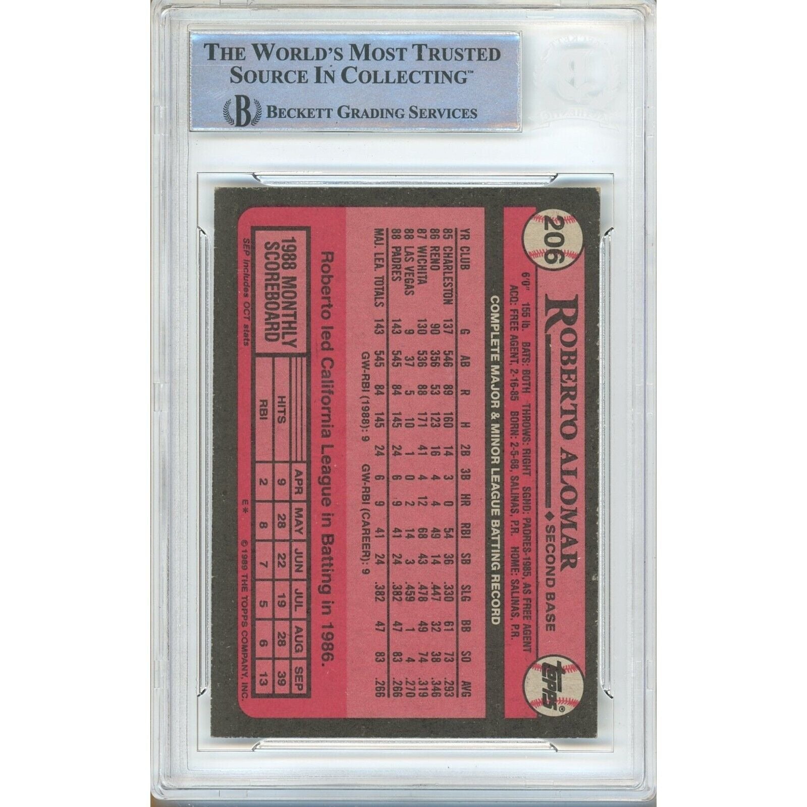 Roberto Alomar San Diego Padres Signed 1989 Topps Baseball Card Beckett Auth Auto Slab