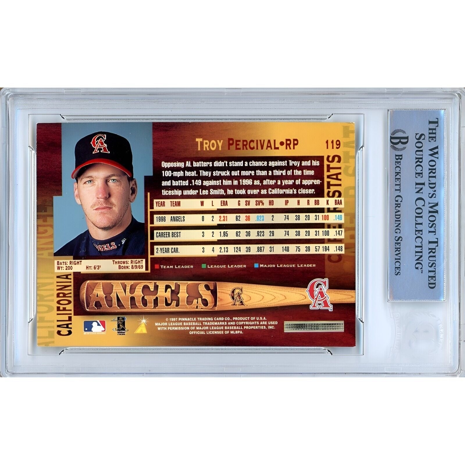Troy Percival Los Angeles Angels Signed 1997 Pinnacle Baseball Card Beckett Auth Auto Slab